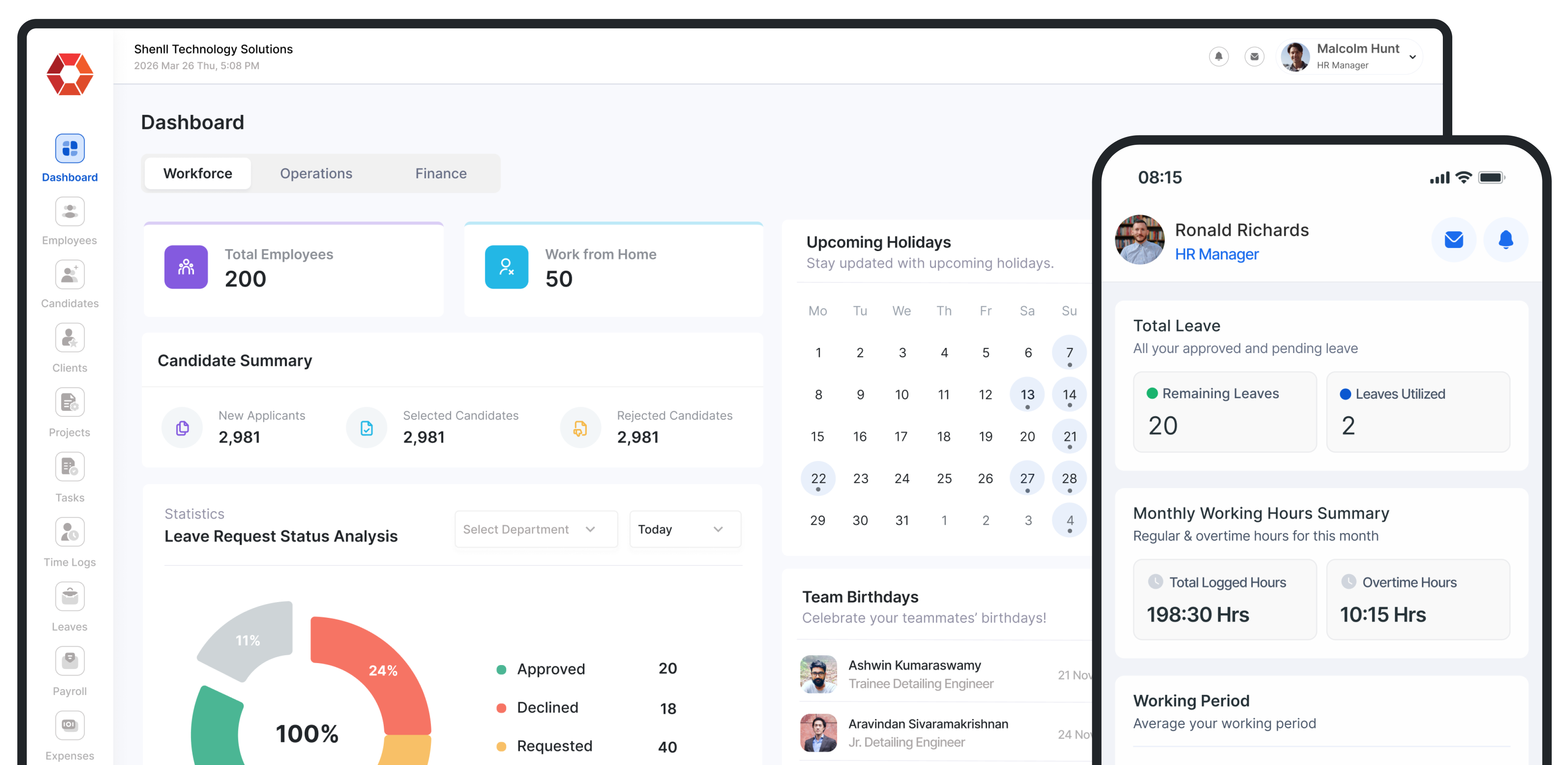 Instead of forcing rigid workflows, Shenll HRMS builds intelligent AI capabilities around your exact business needs. From project team allocation and task assistance to advanced reporting and custom AI agents, our system adapts to your operations—helping teams work smarter, faster, and more efficiently.